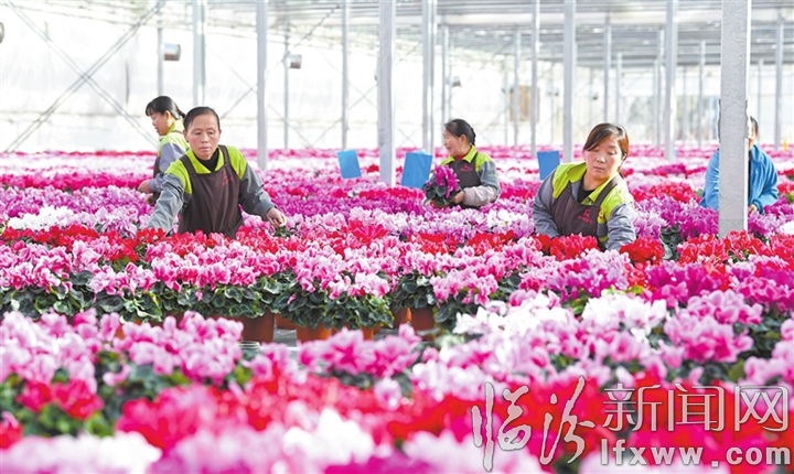 临汾新闻网讯 1月6日,在大宁隆泰双创农林科技有限公司的花卉示范园里,工作人员正在做管护工作,为春节期间花卉上市做准备。该公司2017年落户大宁以来,已为1658户4569名贫困群众资产性收益分红453.6万元,每年户均增收2700元。