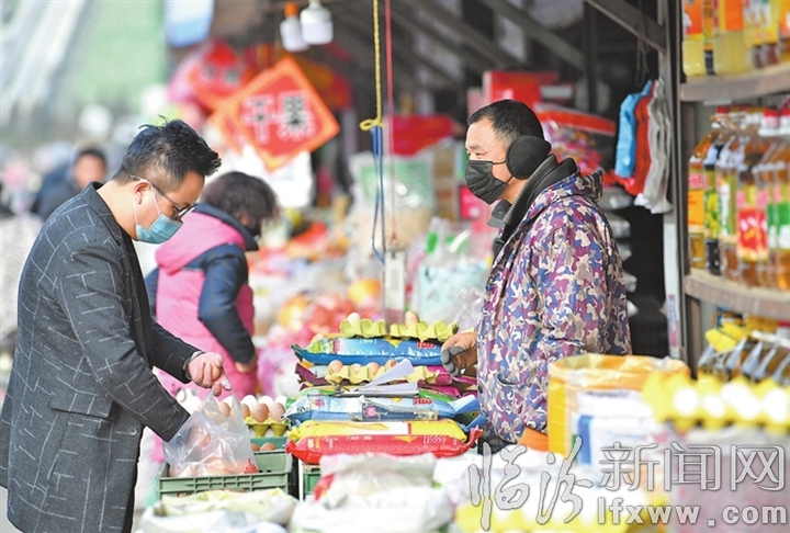 春节将至,我市粮油市场供销两旺、货源充足。图为2月7日,市民在尧丰市场购买粮油。