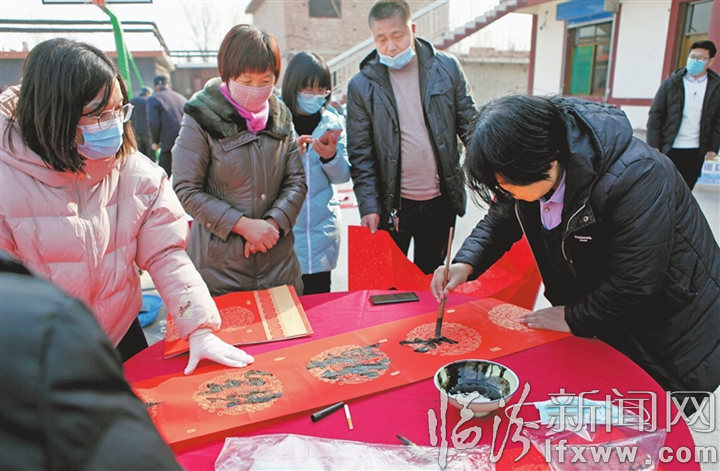 连日来,尧都区金殿镇桑湾村的书法爱好者为村民免费书写春联,喜迎牛年春节的到来。 李现俊 摄