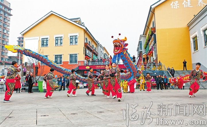 临汾新闻网讯 2月13日,在襄汾县丁陶风情街,民间艺人在表演传统舞龙《龙腾盛世》。