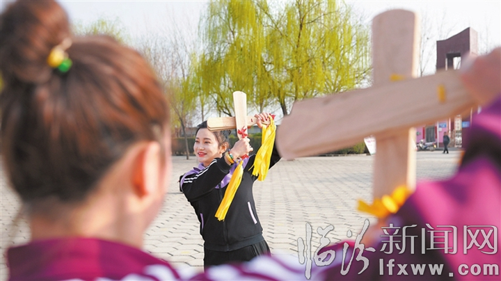 临汾新闻网讯 翼城浑身板也叫“花板子”,是我市第二批省级非物质文化遗产项目。近年来,在翼城县委、县政府的支持下,开展了浑身板进校园活动。图为3月15日,非遗传承人芦亚苹正在翼城县先成中学指导学生练习浑身板。
