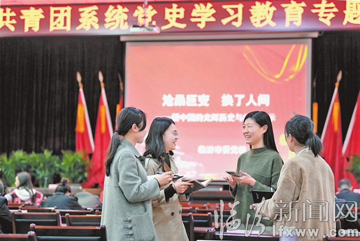 临汾新闻网讯 3月22日至23日,共青团临汾市委对全市116名团干部、少先队辅导员及青年讲师团成员进行了为期两天的党史学习教育专题培训,旨在引导全市广大青少年了解党的光辉历史、感悟党的初心使命、领会党的创新理论、体认党的精神谱系、传承党的红色基因。图为3月22日,在市委党校参加学习的团干部利用课间时间和授课老师进行交流。