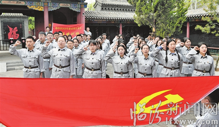 临汾新闻网讯 近日,我市2020年新录用公务员在洪洞县白石红军八路军纪念馆重温入党誓词。市委组织部在2020年新录用公务员初任培训中,把党史学习教育贯穿到培训之中,旨在进一步增强新录用人员坚定理想信念、忠诚履职尽责,扣好入职“第一粒扣子”。