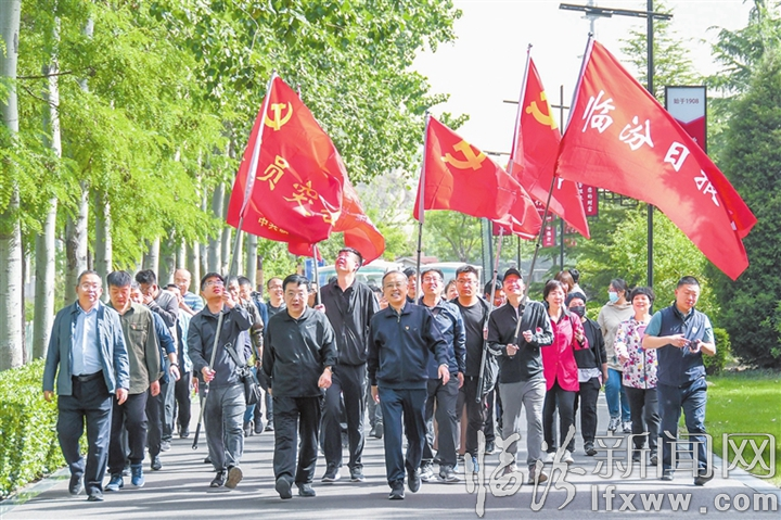 临汾新闻网讯 5月8日,临汾日报社举办了以“美好城市,文明有我”为主题的健步走活动。旨在进一步增强全体干部职工的体育锻炼意识,以不断进取的精神风貌投入到文明城市创建中来。图为临汾日报社的干部职工,在市区汾河文化生态景区参加健步走活动。
