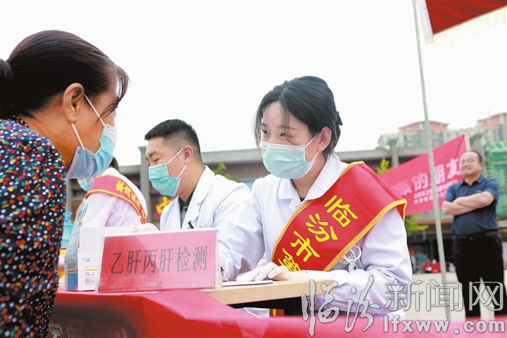 临汾新闻网讯 5月19日是第11个“世界家庭医生日”,市卫健委组织市级医疗卫生机构在市区鼓楼广场开展宣传义诊活动。图为市第三人民医院医护人员在为群众做免费乙肝、丙肝检测。