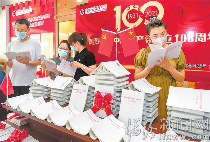 临汾新闻网讯 7月7日,在临汾市新华书店,读者在认真阅读习近平《在庆祝中国共产党成立100周年大会上的讲话》单行本。据书店工作人员介绍,单行本由人民出版社出版,发行后,受到广大读者热烈欢迎。