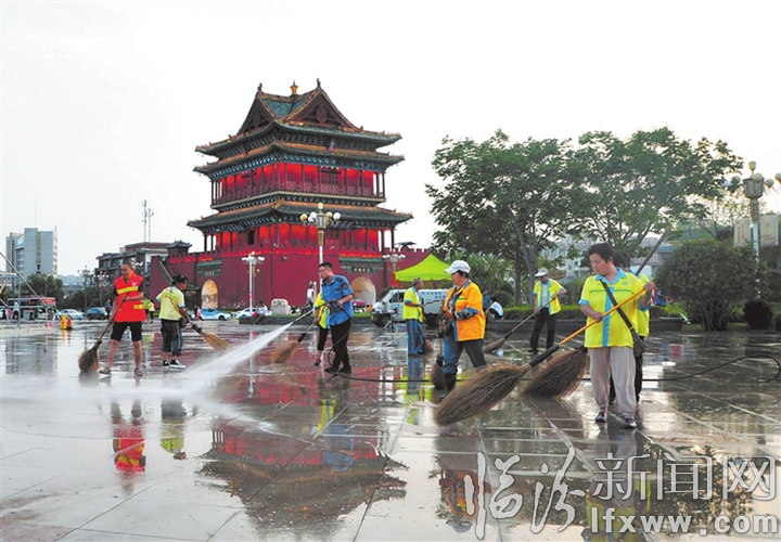 临汾新闻网讯 7月12日,临汾市环境卫生服务中心党员志愿服务队队员,战高温、斗酷暑,细心认真地对市区鼓楼广场及周边环境进行清洗、清扫作业,以实际行动为美化城市环境挥洒辛勤的汗水。