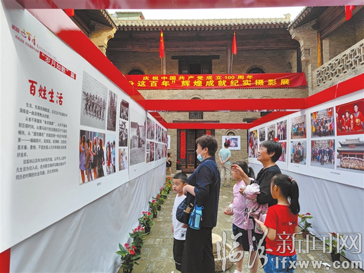 临汾新闻网讯 7月17日,在市区古城大院,市民在参观“临汾这百年·辉煌成就”纪实摄影展。该摄影展由市委宣传部、市文联主办,市摄影家协会承办,精选近500幅(组)各个历史时期的新老照片和生活影像,展示了临汾100年来经济社会发生的翻天覆地的变化和取得的辉煌成就。