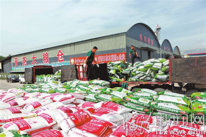 临汾新闻网讯 连日来,尧都区红福泰农产品加工专业合作社从湖北紧急购进650吨中化化肥和100吨农作物种子,为今年秋粮丰收、冬小麦耕种提前做好准备工作。图为合作社员工卸载化肥的场景。