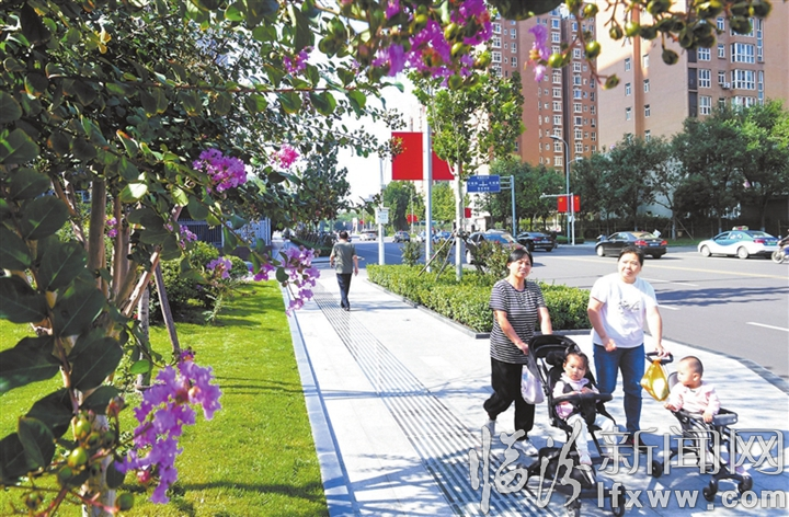 临汾新闻网讯 9月12日,市民在市区常兴中街散步。常兴中街是我市着力打造的精品示范街,随着道路、交通设施、景观绿化、建筑立面等项目的陆续完工,该街道环境得到极大改善,面貌焕然一新。