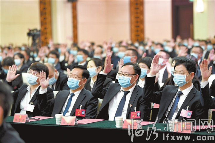 临汾新闻网讯 九月二十八日,中国共产党临汾市第五次代表大会圆满完成了预定的各项任务,胜利闭幕。会议期间,代表们不负重托,认真履职。图为代表举手表决。