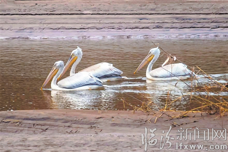 临汾新闻网讯 10月27日,在洪洞汾河国家湿地公园,3只濒危鸟类卷羽鹈鹕在水中游弋。近年来,随着我市生态环境的不断改善,汾河水域成为许多候鸟迁徙的场所,候鸟迁徙数量、品种逐年增多。