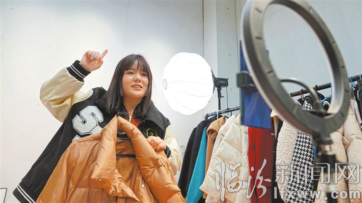 临汾新闻网讯 近年来,为了助力侯马经济发展,侯马邮政分公司统筹整合优势资源,创新“邮政+网红直播+社会服务”模式,打造了“邮政快手直播电商孵化基地”,引进电商300余户。该电商孵化基地在今年“双十一”期间创收200余万元。图为11月22日,电商“胖妞”直播销售女装。