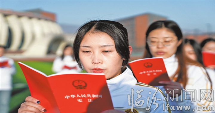 临汾新闻网讯 为弘扬宪法精神,增强新时代大学生的宪法意识,12月2日,山西师范大学现代文理学院政法系党支部组织政法系90余名学生诵读宪法序言及正文,增强他们的法律意识,感悟宪法的重要性。 记者 赵 俊 摄