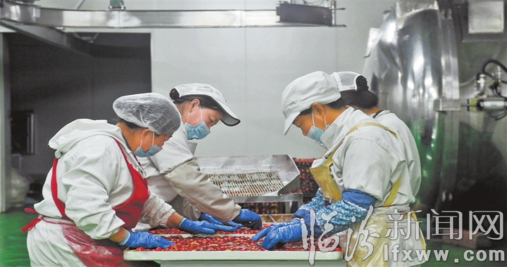 临汾新闻网讯 近日,山西好乐佳食品有限公司员工正在加工山楂。近年来,该公司以隰县当地农产品和果品资源优势为依托,以生产基地规模化加工为载体,采用“企业+合作社+农户+基地”的模式,走出了种、产、销一条龙的产业化道路,有效带动了当地农户增收。