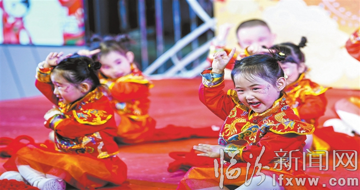 临汾新闻网讯 日前,临汾市红黄蓝幼儿园举办了主题为“童真童心耀童梦 虎虎生威向未来”元旦文艺汇演活动,在欢歌笑语中欢度节日。图为小朋友们在表演节目。