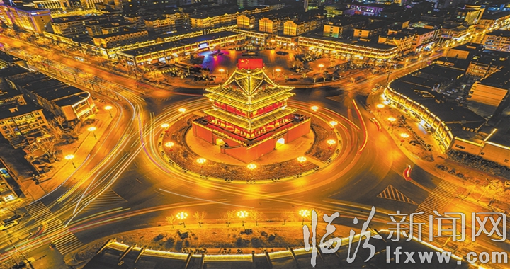 临汾新闻网讯 连日来,市区鼓楼及周边主干街道灯光璀璨,流光溢彩,将冬日的夜晚装扮得分外美丽。这是1月8日晚,航拍镜头下的夜景。