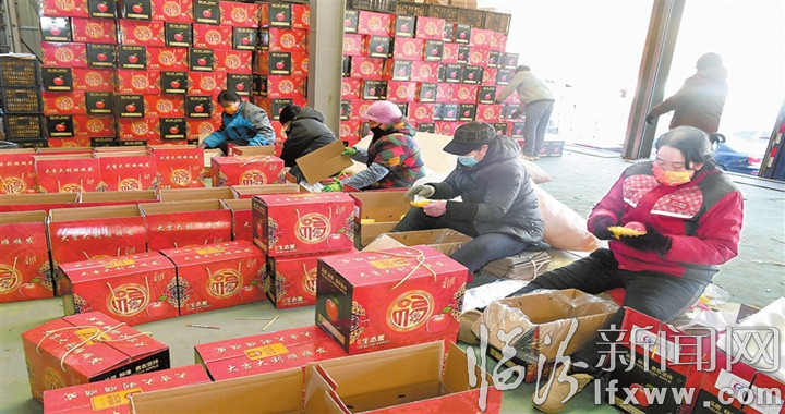 临汾新闻网讯 春节临近,吉县吉昌镇红林果库的工作人员在给苹果装箱,准备销往全国各地,以满足节日市场需求。近年来,吉县大力实施“三品一标”认证,不断壮大苹果产业,促进农民增收。