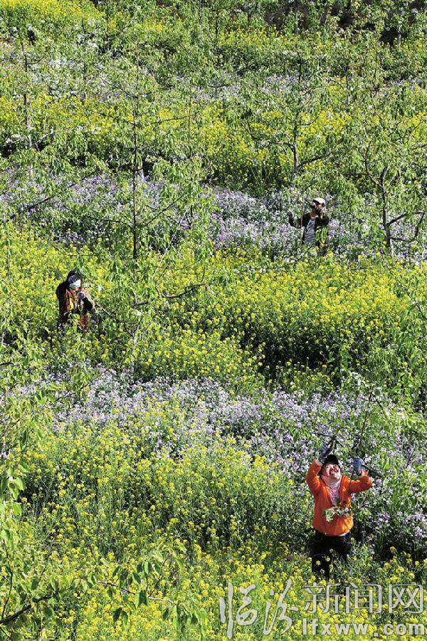 临汾新闻网讯 4月10日,在汾西县团柏乡柴洼庄村的3000亩玉露香梨基地,工作人员正在给梨树疏花、喷洒防虫害药剂。近年来,汾西县依托梨园基地的林果资源,大力发展观光农业、乡村旅游,盘活一方经济,带动周边群众就业增收。