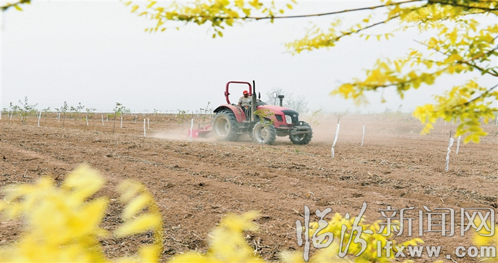 临汾新闻网讯 4月21日,大宁县太德乡茹古村沃土农机服务专业合作社工作人员驾驶拖拉机进行旋耕作业。大宁县是2022年大豆玉米带状复合种植示范推广任务县之一,围绕稳粮保供,该县积极开展春耕备耕、大豆玉米带状复合种植推广等工作,根据种植规划片区,就近就地安排农业生产托管服务主体进行种植全程托管,确保签约农户玉米保产量、大豆保增收。记者 赵俊堂 摄