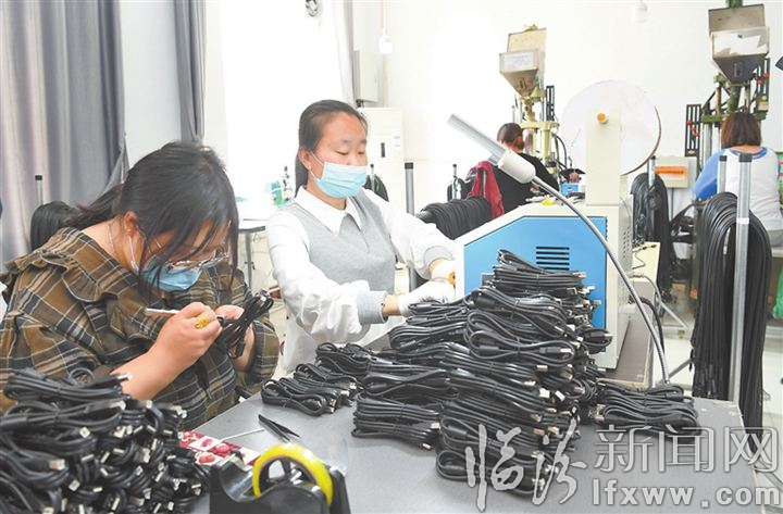 临汾新闻网讯 近年来,翼城县唐兴镇冶南村坚持把发展壮大村级集体经济作为实施乡村振兴战略的重要抓手,大力引进中小微企业,带动村民在家门口就业增收。图为村民正在该村的数据线代工厂加工数据线。