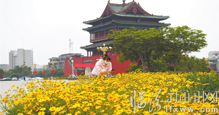 临汾新闻网讯 连日来,市区鼓楼广场周围各类鲜花竞相绽放,争奇斗艳,吸引了许多市民前来观赏、拍照。 本报记者 魏华 摄