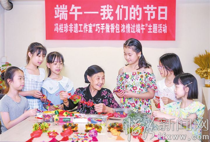 临汾新闻网讯 5月29日,在大宁县“虎头香包”制作工艺非遗传承人冯桂珍工作室,87岁的冯桂珍老人正指导小朋友们制作端午香包。当日,主题为端午——我们的节日“巧手做香包 浓情过端午”活动举办,通过制作香包,使孩子们感受浓浓的传统文化氛围。