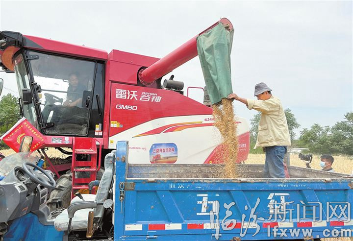 临汾新闻网讯 5月31日,在侯马市上马街道办事处斗龙沟村、隘口村,联合收割机正在作业。
