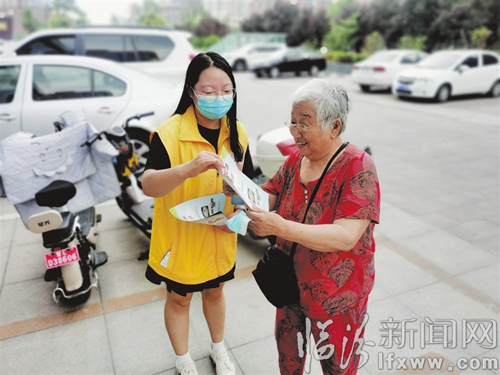 临汾新闻网讯 今年6月是第10个防范非法集资宣传月,为进一步提高广大居民的金融知识水平,有效防范金融风险,连日来,尧都区水塔街道汾泽社区开展了以“守住钱袋子 护好幸福家”为主题的宣传活动,通过组织社区工作人员进小区、进家户、进超市、进门店、进学校张贴海报、发放资料、面对面讲解等方式,开展一系列防范非法集资宣传,引导大家自觉抵制非法集资,远离高息诱惑,树立正确的投融资理念,提高防范非法集资意识,守住自己的钱袋子。图为工作人员为居民发放宣传资料。