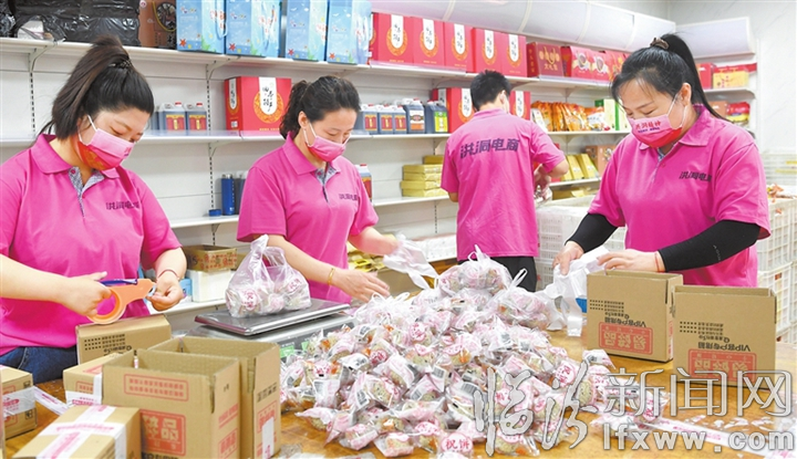 临汾新闻网讯 近年来,洪洞县大力发展农村电商市场,增加农民收入,助力乡村振兴。目前,洪洞名优特产远销北京、上海、重庆、河北等地。图为洪洞县优品供应链有限公司工作人员在包装土特产。