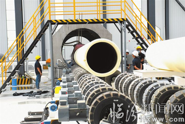 临汾新闻网讯 山西利源中天节能科技有限公司是一家集绿色节能产品研发、生产、销售、施工于一体的现代化高科技民营企业。该企业实施的智能监测型绝热管道和绿色装配式建筑节能产品项目投资2.8亿元,年生产能力达3600公里,是今年的省级重点项目。项目全部投产后,预计可实现年均销售收入10.8亿元。图为近日工人正在加工生产管道。