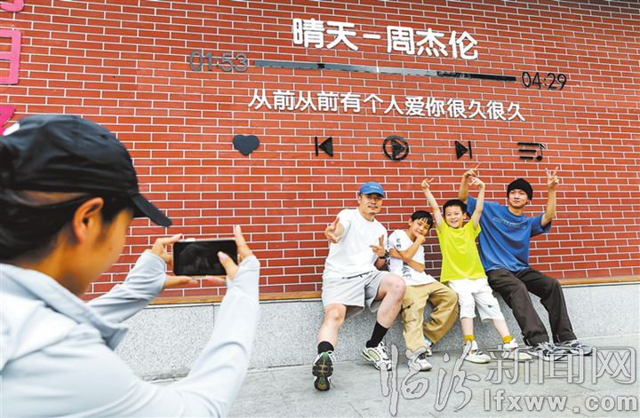 临汾新闻网讯 7月5日,在市区向阳路与广宣街十字路口西南角“晴天”网红墙打卡地,街舞爱好者们在拍照留念。随着我市城市更新工作的持续推进,新增多处网红打卡地,在提升街区文化品位和市民幸福感的同时,让城市更有颜值、有价值、有气质。