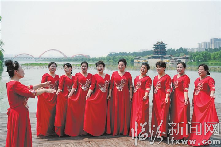 临汾新闻网讯 8月5日,在市汾河文化生态景区,市老年大学兴乐艺术合唱团的音乐爱好者在唱歌。市老年大学将“第二课堂”搬到景色怡人的公园里,延伸和补充了课堂教学,增加了教学的趣味性,满足了广大中老年朋友的锻炼学习需求。