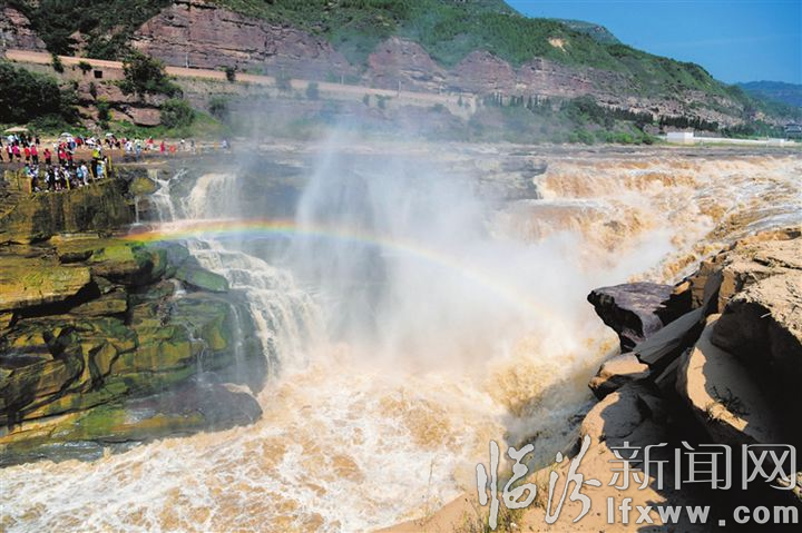 临汾新闻网讯 近日,黄河壶口瀑布迎来伏汛。浊流滚滚奔腾而下,一道彩虹横跨两岸,主副瀑布连成一线,撞击出巨大的水雾,不断蒸腾翻涌,波涛震耳,水浪扑面,气势磅礴。