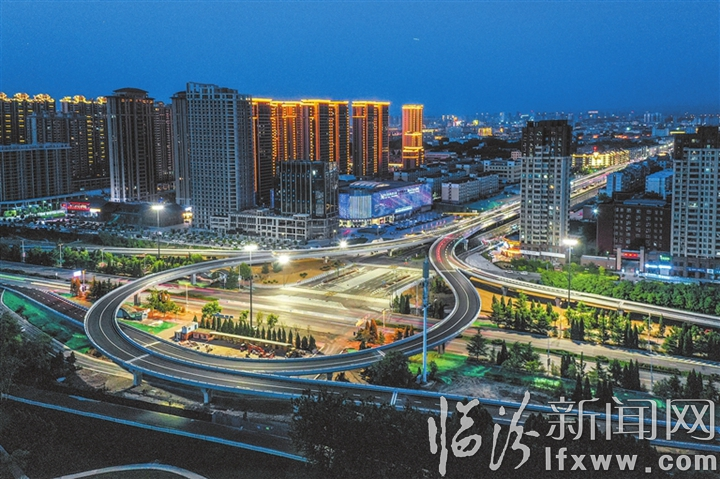 临汾新闻网讯 这是8月18日拍摄的市区五一路快速通道工程体育街至滨河东路段夜景。作为我市“核心内环”的一项重要节点工程,五一路快速通道工程进一步完善了道路附属设施和亮化工程,夜幕降临,在灯光的装扮下,景色美不胜收。