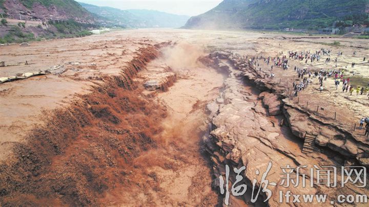 临汾新闻网讯 连日来,受黄河上游降雨影响,黄河壶口瀑布水量大增,十里龙槽形成了绵延数百米的壮美瀑布群景观。每年7月至10月黄河进入汛期,黄河水量大增,壶口瀑布水流量保持在每秒2000立方米左右,部分核心观景区域及护栏被淹,奔腾的黄河水携带着大量泥沙呼啸而下,远远望去,主、副瀑布连成一片,排山倒海,气势恢宏,景色壮美,吸引了不少游客驻足观看、拍照留念。
