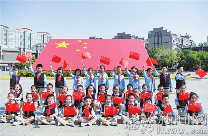 临汾新闻网讯 9月29日,在市区鼓楼广场,临汾市解放路小学的学生们在巨型国旗前拍照打卡。当日,该小学举办了“我和我的祖国同框”主题活动,通过学生和国旗合影等形式,培养学生们的爱国情怀。