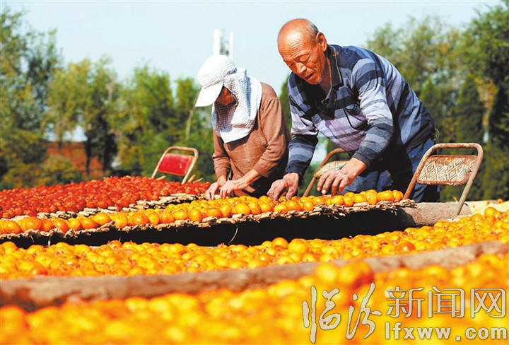 临汾新闻网讯 深秋时节,襄汾县新城镇狄家庄村村民抢抓晴好天气,对采摘的柿子进行加工晾晒。近年来,狄家庄村立足资源优势,大力发展柿饼加工特色产业。目前,该村共有120余户村民从事柿子采摘加工、生产销售,年可生产传统手工柿饼1万余公斤,柿饼加工已成为当地群众增收致富的重要产业。