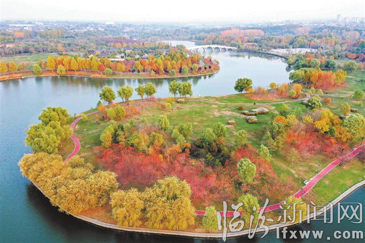 临汾新闻网讯 初冬时节,市区涝洰河生态公园内郁郁葱葱的树木渐渐褪去绿装,换上彩衣,在暖阳的映照下,展现出一幅色彩斑斓的画卷。