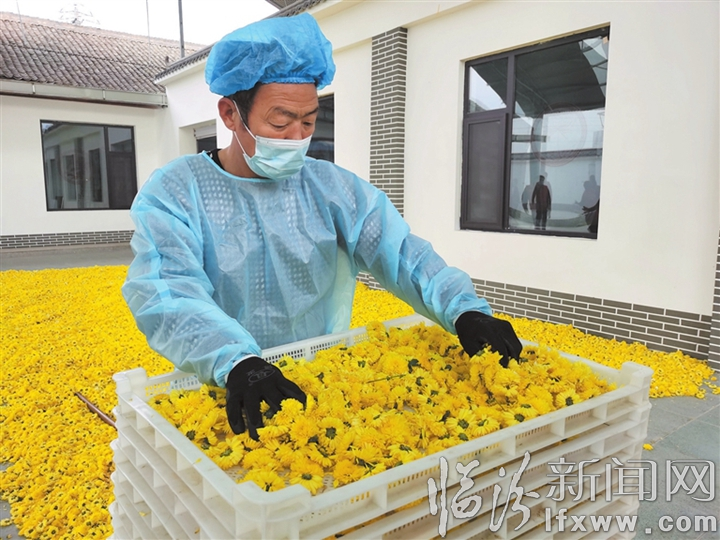 临汾新闻网讯 近年来,曲沃县高显镇太许村将菊花种植加工作为发展壮大集体经济的“龙头”产业,流转土地100亩,种植北京菊、杭白菊、金丝皇菊等菊花,带动村民收入持续稳步增长。图为村民正在分拣收获的金丝皇菊。