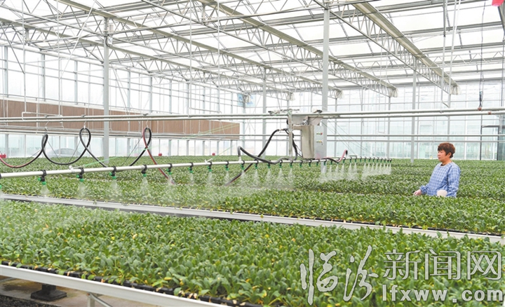 临汾新闻网讯 2月18日,曲沃智慧果蔬产业示范区工作人员正在用自动化设备为菜苗浇水。近年来,曲沃县发挥区域资源优势,大力发展智慧农业,推动了果蔬产业转型升级。