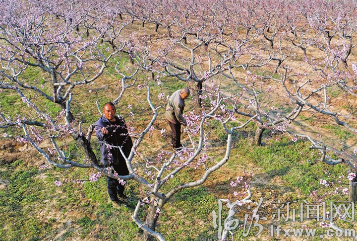 临汾新闻网讯 日前,襄汾县大邓乡上西梁村上百亩桃树进入盛花期,当地农民抢抓农时对桃园开展追肥、灌溉、疏花等农事活动,确保桃树正常生长、果实优质高产。
