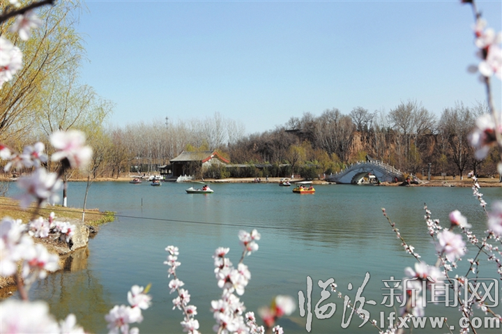 临汾新闻网讯 四月的春风吹遍平阳大地,到处是绿意盎然、百花争艳的美景,人们纷纷走出家门,乐享春日时光。图为市民在尧都区涝洰河公园泛舟赏春。
