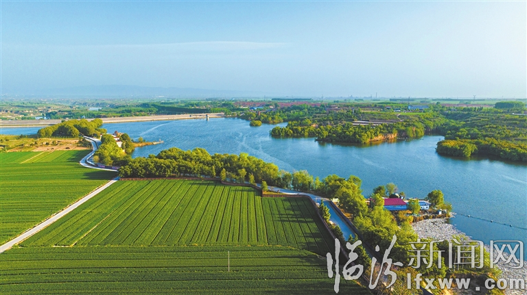 临汾新闻网讯 暮春时节,襄汾县西贾乡双龙湖国家湿地公园内绿树成荫、波光潋滟,湖边垂柳、泵站与周边农田的麦苗、村庄、道路等相映成趣,勾勒出一幅静谧迷人的生态画卷。