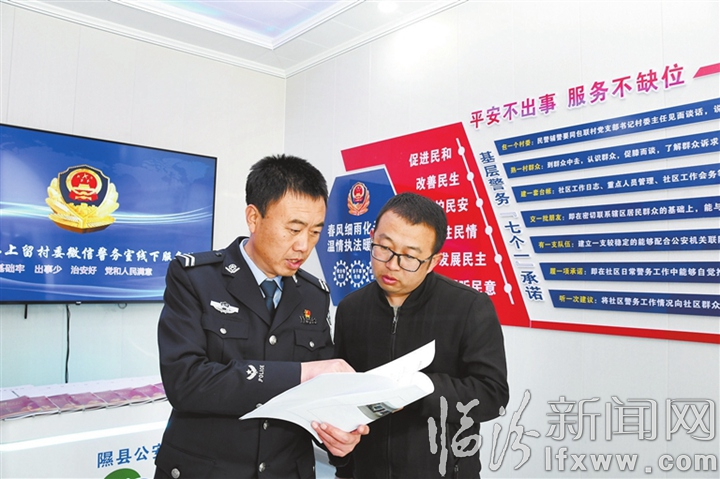 临汾新闻网讯 5月10日,在隰县公安局龙泉镇上留村微信警务室线下服务中心,值班民警和社区工作者在协调辖区群众的诉求问题。隰县公安局微信警务室共建立511个,纳入群众4.8万余人,涵盖“普法园地”“反诈专栏”“证照服务”等便民事项,主要受理群众走失、财物丢失等救助警情,兼具听取社情民意、化解风险隐患等社会功能。