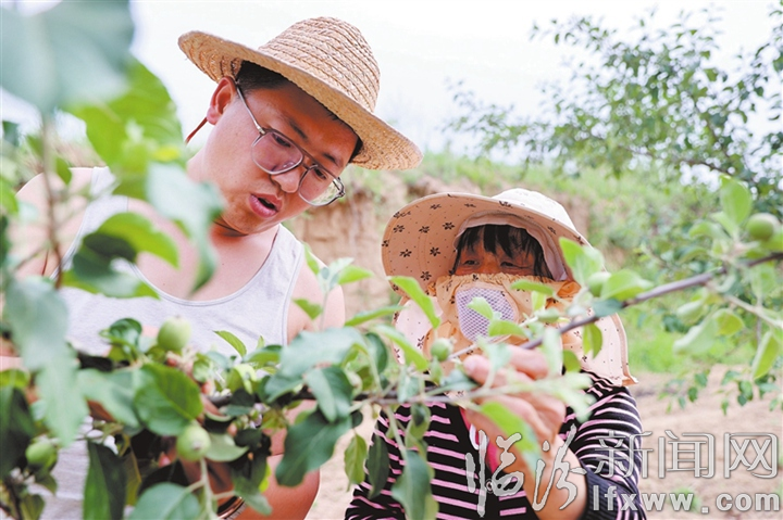 临汾新闻网讯 眼下正是果树管理的关键时节,大宁县太古镇岭上村党支部书记王蒲带领果农在“宁脆”苹果园进行枝条疏果和技术管理,争取今年有个好收成。