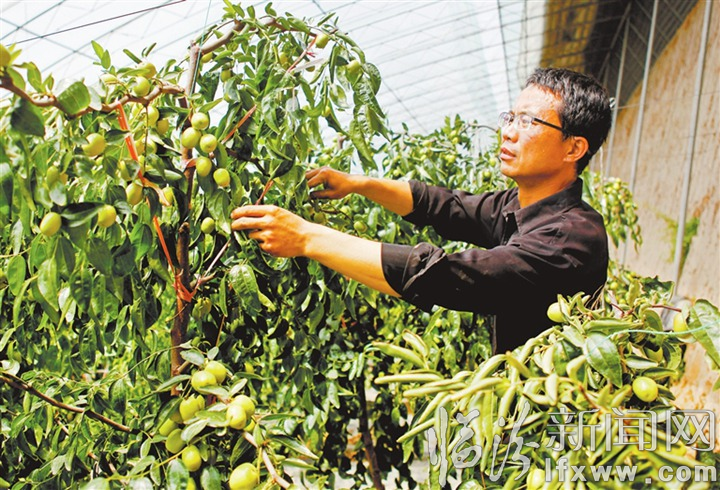 临汾新闻网讯 5月22日,襄汾县古城镇关村村民在种植基地对大棚冬枣进行管护作业。近年来,关村采取“党建引领+公司运作+合作经营+农户参与”模式,大力发展特色农业种植产业,投资605万元流转土地150亩,建设高标准冬枣大棚30座。小小冬枣树已经成了该村富民大产业。