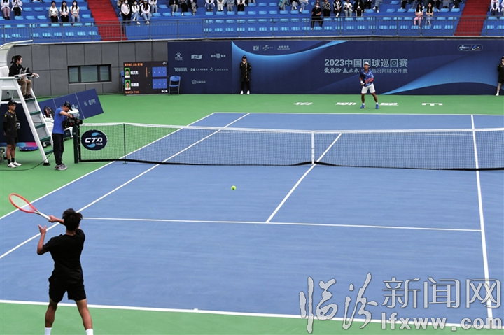 临汾新闻网讯 5月30日,2023中国网球巡回赛“爱临汾·赢未来”山西临汾网球公开赛继续在临汾锣鼓网球中心激烈进行。此次公开赛是中国网球巡回赛CTA800职业级赛事,共有来自全国各地的150余名网球运动员参赛。图为男子单打正选第一轮选手姚文杰和陈醒道正在比赛。