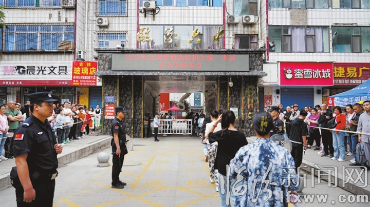 临汾新闻网讯 交警在临汾同盛实验中学考点周围维持交通秩序。