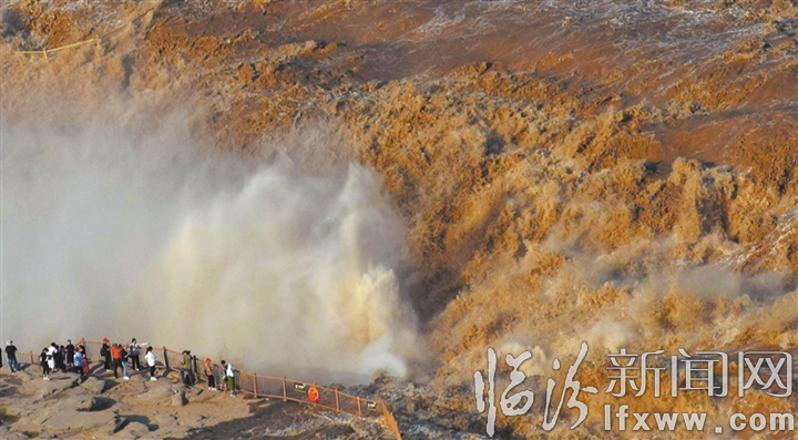 临汾新闻网讯 近日,游客在吉县黄河壶口瀑布景区游览观瀑。受上游降雨增多和万家寨水库调节放水影响,黄河干流迎来汛期,滚滚波涛奔腾而下,主副瀑布连成一线,气势极为壮观,吸引了众多游客前来参观。